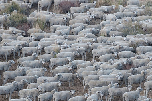 Usa-California Shepherds guide huge herds of sheep in the high Sierras near Bodie White Modern Wood Framed Art Print with Double Matting by Sederquist, Betty