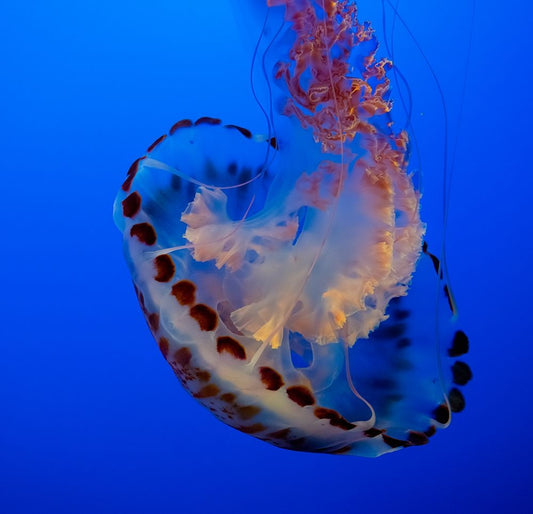 California-Monterey-Monterey Bay Aquarium-Jellyfish swimming White Modern Wood Framed Art Print with Double Matting by Looney, Hollice