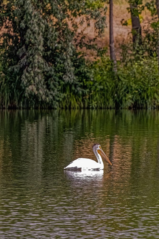 USA-Colorado-Windsor American white pelican swimming in pond White Modern Wood Framed Art Print with Double Matting by Jaynes Gallery