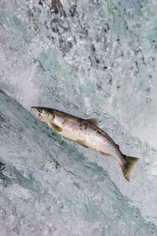 Salmon jumping over Brooks Falls-Katmai National Park-Alaska-USA White Modern Wood Framed Art Print with Double Matting by Su, Keren