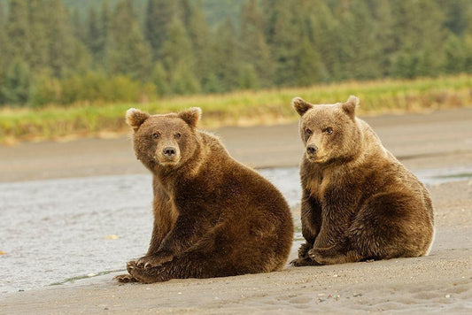 Adult female grizzly bear and cub sleeping on beach at sunrise-Lake Clark National Park and Preserve White Modern Wood Framed Art Print with Double Matting by Jones, Adam