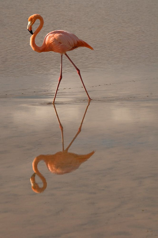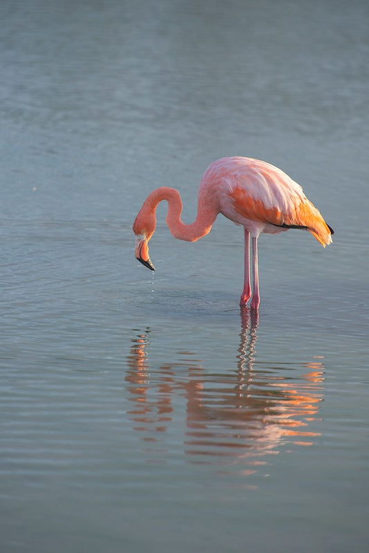 Flamingo looking for food in an estuary in the Galapagos Islands. White Modern Wood Framed Art Print with Double Matting by Sederquist, Betty