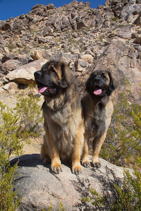 Leonbergers enjoying the high desert White Modern Wood Framed Art Print with Double Matting by Muench, Zandria