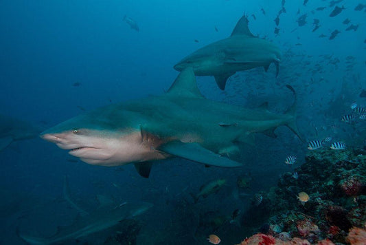South Pacific-Fiji Bull sharks White Modern Wood Framed Art Print with Double Matting by Jaynes Gallery