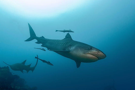 South Pacific-Fiji Tiger shark close-up White Modern Wood Framed Art Print with Double Matting by Jaynes Gallery