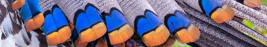 Belize-Central America-Colors of the ocellated turkeys White Modern Wood Framed Art Print with Double Matting by Norring, Tom