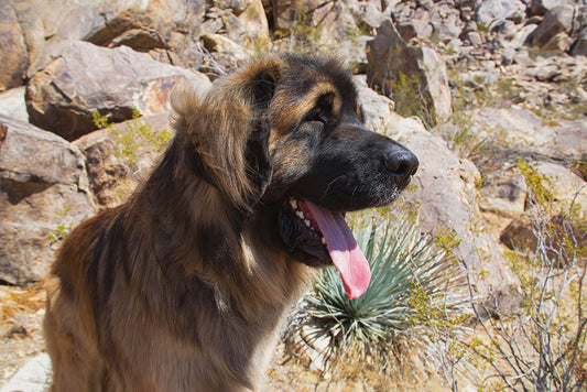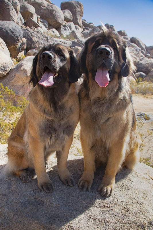 Leonbergers enjoying the high desert White Modern Wood Framed Art Print with Double Matting by Muench, Zandria