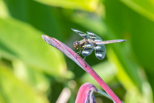 Twelve-spotted Skimmer male on Water Canna White Modern Wood Framed Art Print with Double Matting by Day, Richard and Susan