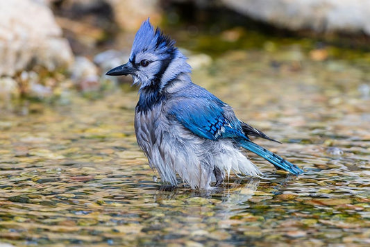 Blue Jay-Cyanocitta cristata-bathing Marion County-Illinois White Modern Wood Framed Art Print with Double Matting by Day, Richard and Susan