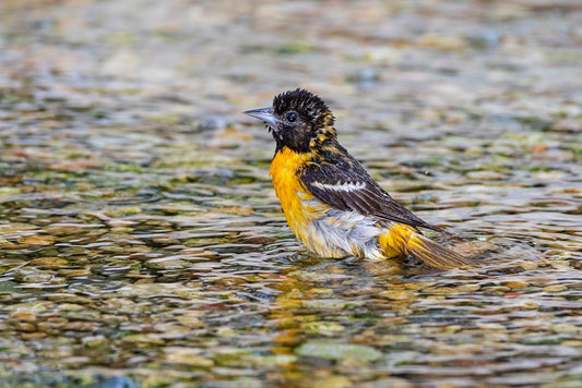 Baltimore Oriole-Icterus galbula-female bathing Marion County-Illinois White Modern Wood Framed Art Print with Double Matting by Day, Richard and Susan