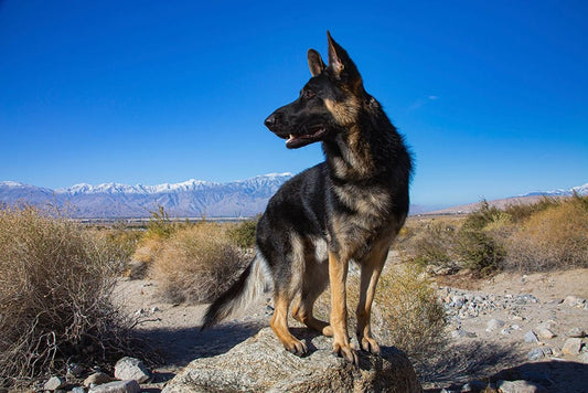 German Shepherd in the Coachella Valley-California White Modern Wood Framed Art Print with Double Matting by Muench, Zandria