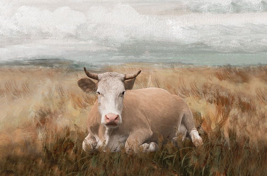 Curious Cow White Modern Wood Framed Art Print with Double Matting by White Ladder