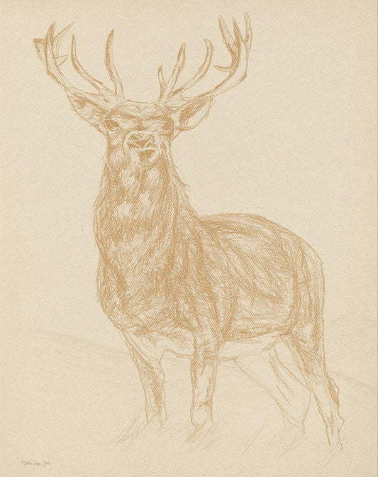 Buck Sketch White Modern Wood Framed Art Print with Double Matting by Stellar Design Studio
