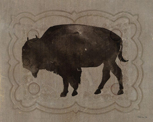 Buffalo Impression 2 White Modern Wood Framed Art Print with Double Matting by Stellar Design Studio