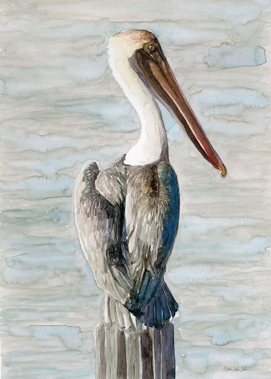 Brown Pelican 1 White Modern Wood Framed Art Print with Double Matting by Stellar Design Studio
