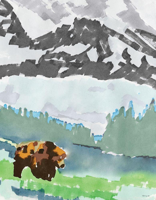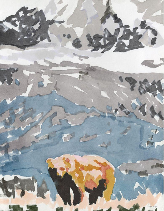 Mountain Grizzly 2 White Modern Wood Framed Art Print with Double Matting by Stellar Design Studio