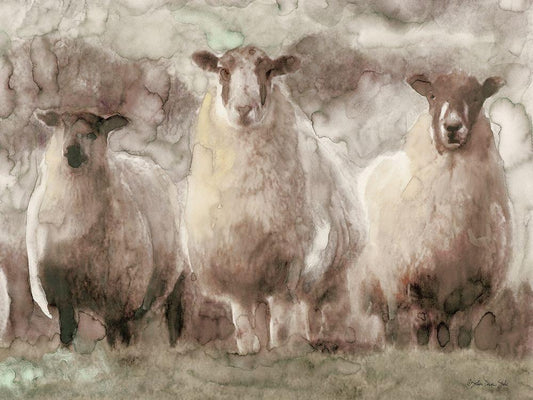 Three Sheep White Modern Wood Framed Art Print with Double Matting by Stellar Design Studio