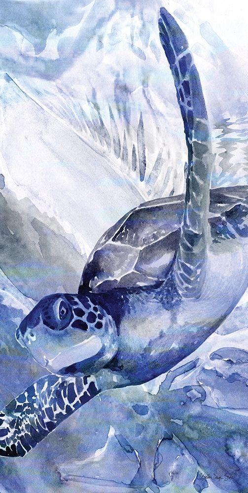 Swimming Sea Turtle White Modern Wood Framed Art Print with Double Matting by Stellar Design Studio