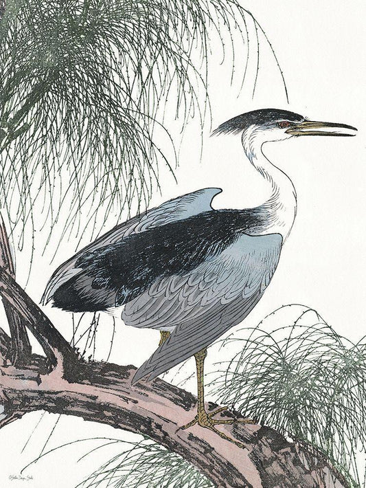 Perched Heron White Modern Wood Framed Art Print with Double Matting by Stellar Design Studio