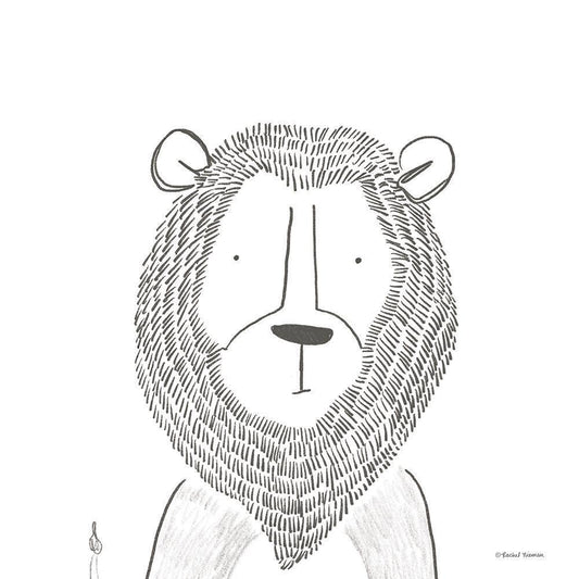 Lion Line Drawing 1 White Modern Wood Framed Art Print with Double Matting by Nieman, Rachel