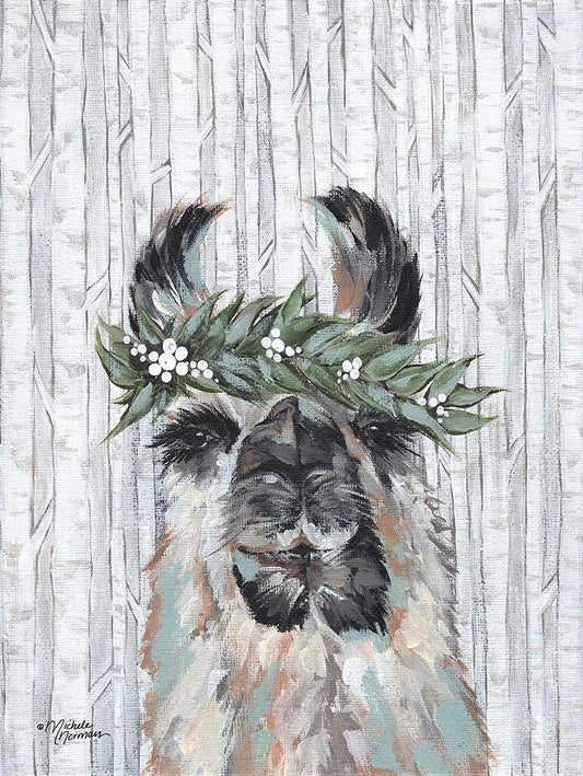Lizzy the Winter Llama White Modern Wood Framed Art Print with Double Matting by Norman, Michele