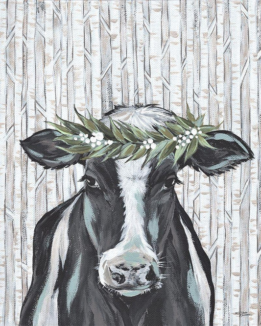 Wanda the Winter Holstein White Modern Wood Framed Art Print with Double Matting by Norman, Michele