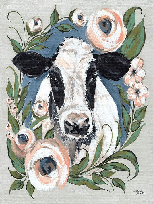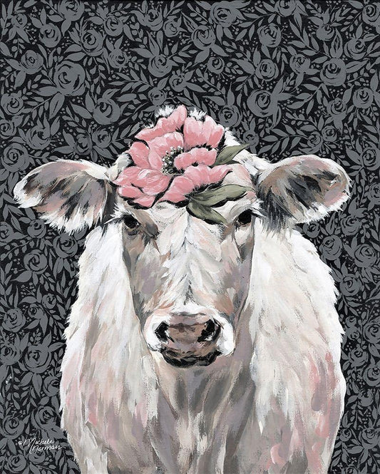 Annabelle the Cow White Modern Wood Framed Art Print with Double Matting by Norman, Michele