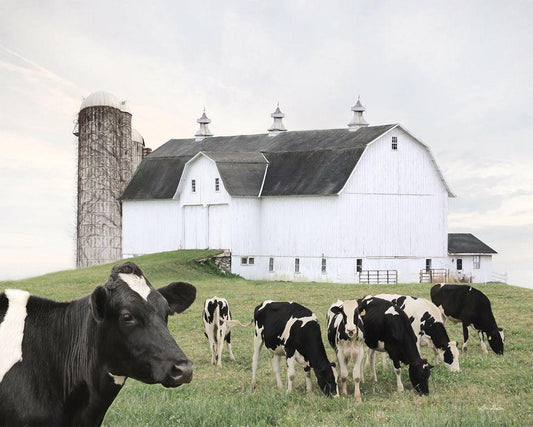 Cold Cows on the Farm White Modern Wood Framed Art Print with Double Matting by Deiter, Lori