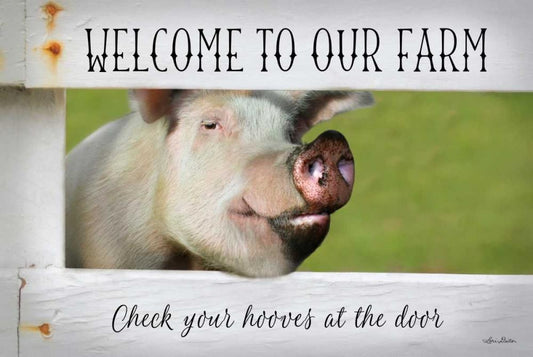 Welcome Pig White Modern Wood Framed Art Print with Double Matting by Deiter, Lori