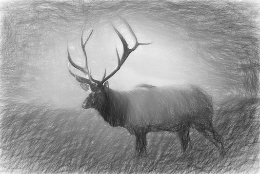 Bull Elk Sketch White Modern Wood Framed Art Print with Double Matting by Deiter, Lori
