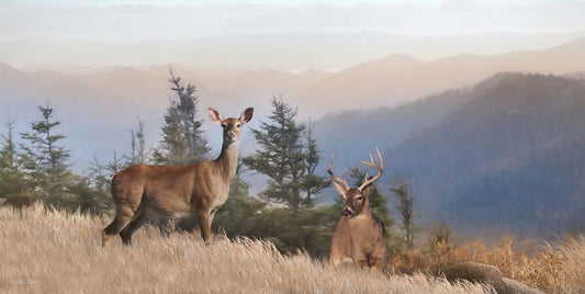 Cascade Mountain Deer White Modern Wood Framed Art Print with Double Matting by Deiter, Lori
