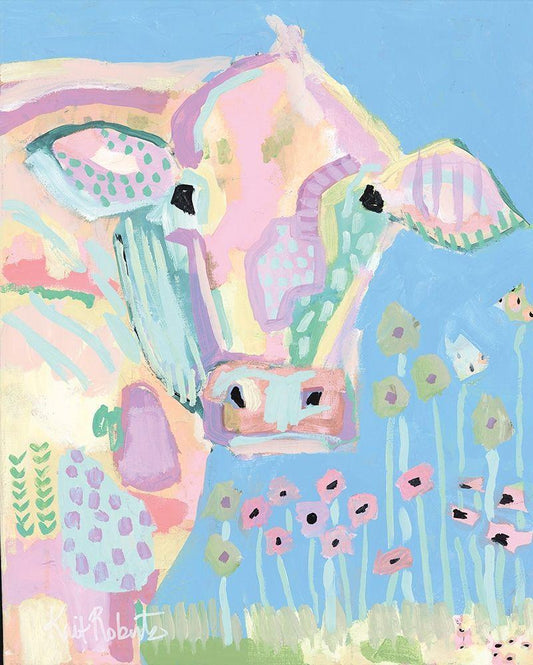 Pastel Cow White Modern Wood Framed Art Print with Double Matting by Roberts, Kait