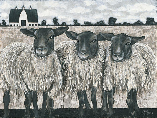 Three Sheep White Modern Wood Framed Art Print with Double Matting by Hollihocks Art