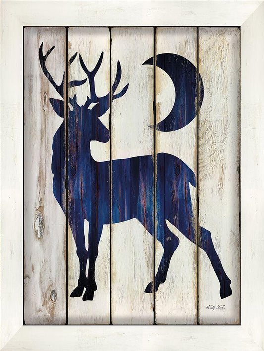 Midnight Blue Deer II White Modern Wood Framed Art Print with Double Matting by Jacobs, Cindy