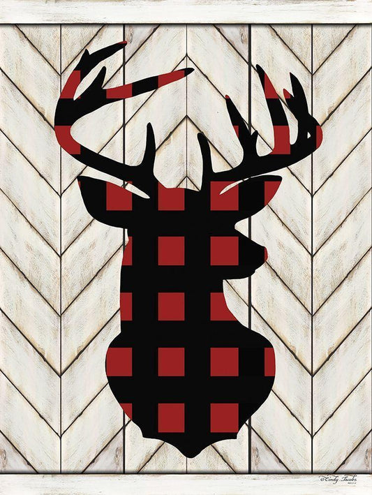 Plaid Deer White Modern Wood Framed Art Print with Double Matting by Jacobs, Cindy