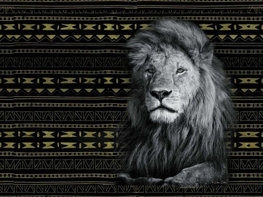Patterned Lion White Modern Wood Framed Art Print with Double Matting by Dee Dee