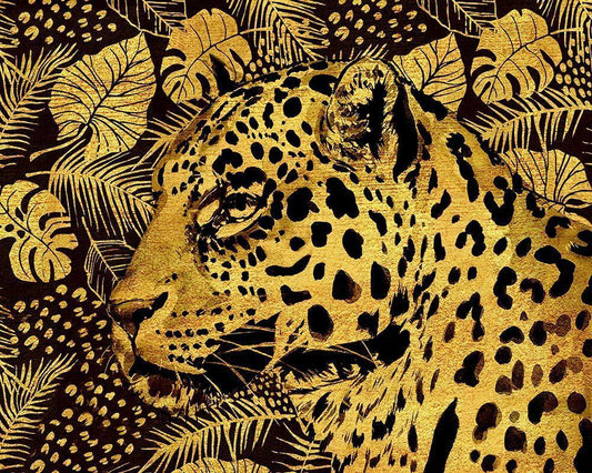 Golden Leopard White Modern Wood Framed Art Print with Double Matting by Surma, Agata