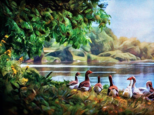 Gaggle of Geese White Modern Wood Framed Art Print with Double Matting by Aldridge, Ashley