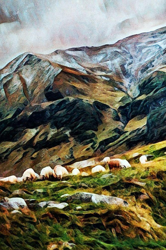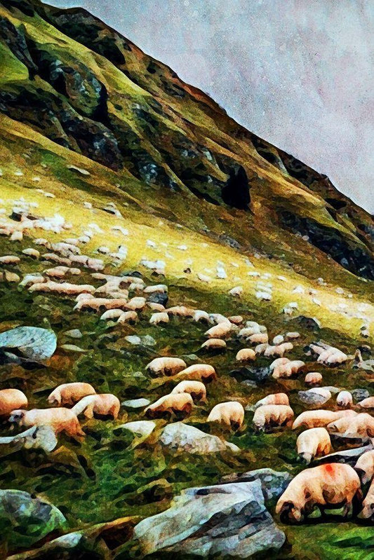Highland Hillside Herd I White Modern Wood Framed Art Print with Double Matting by Aldridge, Ashley