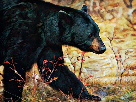 Black Bear Scrubland Stroll White Modern Wood Framed Art Print with Double Matting by Aldridge, Ashley