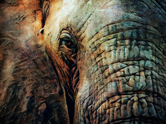 African Elephant Wise Eyes White Modern Wood Framed Art Print with Double Matting by Aldridge, Ashley
