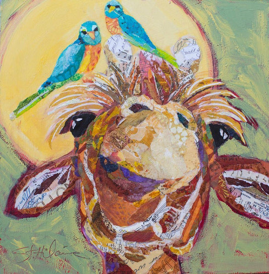 Giraffe and Birds White Modern Wood Framed Art Print with Double Matting by St Hilaire, Elizabeth