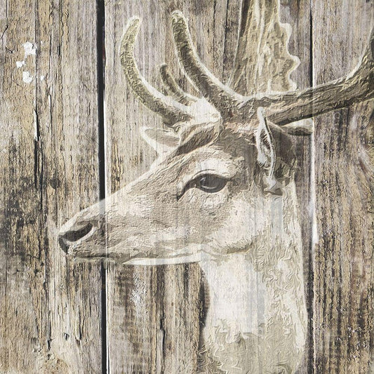 Wildheads Stag White Modern Wood Framed Art Print with Double Matting by Smith, Karen