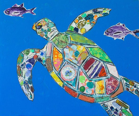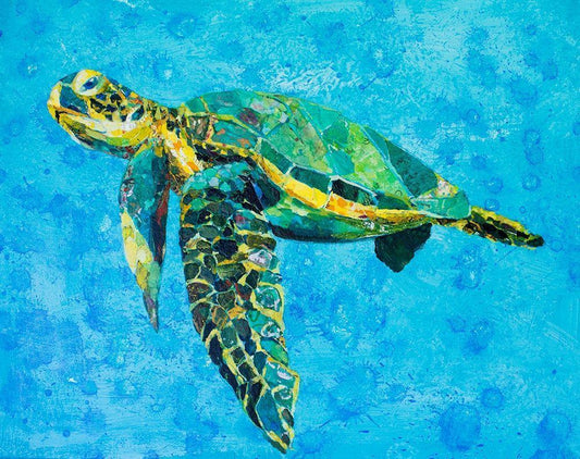 Blue Sea Turtle White Modern Wood Framed Art Print with Double Matting by St Hilaire, Elizabeth
