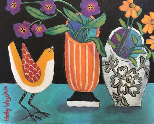 Two More Cheery Vases and a Chirp More White Modern Wood Framed Art Print with Double Matting by Wojahn, Holly