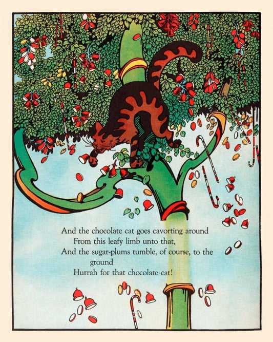 Gingerbread dog chases the Cat and Birds White Modern Wood Framed Art Print with Double Matting by Field, Eugene