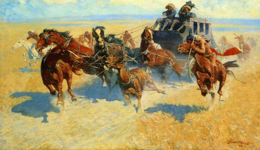 Downing The Nigh Leader White Modern Wood Framed Art Print with Double Matting by Remington, Frederic