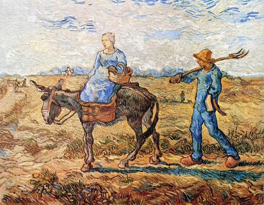 Morning Peasant Couple To Work White Modern Wood Framed Art Print with Double Matting by Van Gogh, Vincent