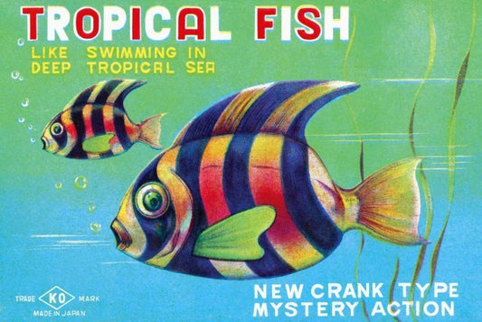 Tropical Fish White Modern Wood Framed Art Print with Double Matting by Retrobot