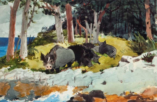 Bermuda Settlers White Modern Wood Framed Art Print with Double Matting by Homer, Winslow
